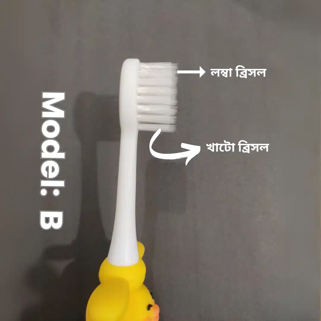 এই ব্রাশের ব্রিসলগুলো অনেক নরম হওয়াতে বাচ্চাদের মাড়ির ক্ষতি হয় না।